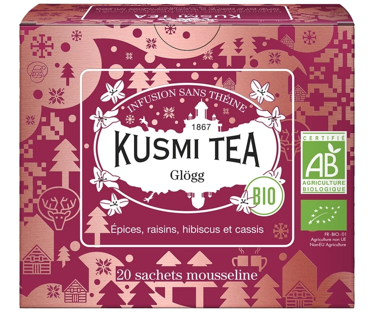 En Scandinavie, le froid fait partie du quotidien, on y déguste du Glögg, vin chaud traditionnel. Kusmi Tea le revisite en tisane bio avec des notes de fruits rouges, cannelle, réglisse et cardamome. Conditionnement : étui de 20 sachets mousseline