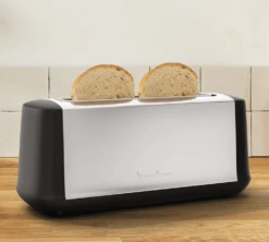 Très simple d’utilisation, il répond aux besoins de toute la famille et est l’allié d’un petit-déjeuner réussi! Le grille-pain Moulinex Subito Select LS340811 dispose d’une longue fente qui permet de griller de grandes tartines ou 2 tranches de pain de mie.